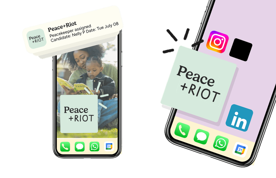 To get paired with London’s most creative sitters, download our app. Getting started is simple - with the Peace+Riot App, you can get outstanding childcare in a few taps. Create your family profile, post your job, and available Peacekeepers will apply. You can review their experience, skills and background before confirming your booking - all in one place. Whether it’s a planned evening out or a last-minute need, booking trusted childcare is easier than ever. Support, right from your pocket.